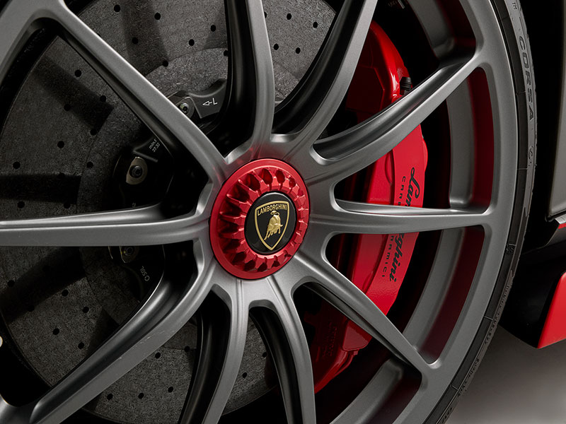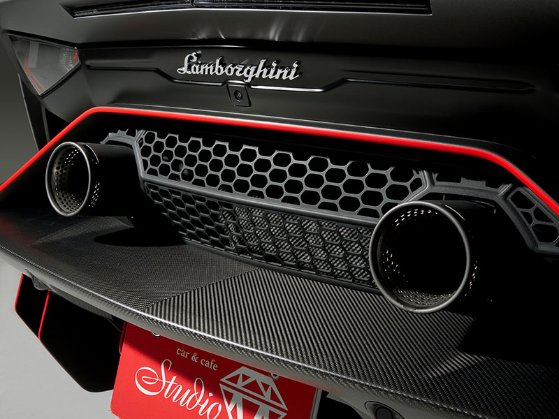 ランボルギーニのエンブレムがアクセントを添えています。