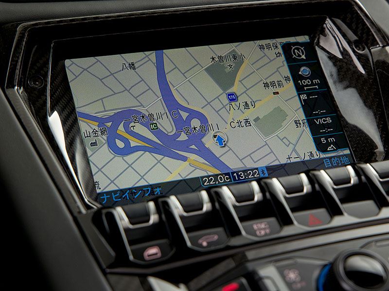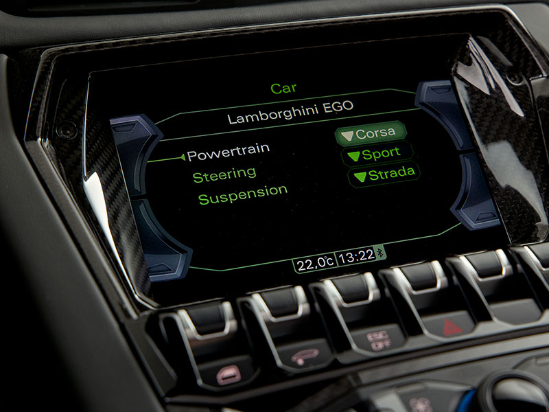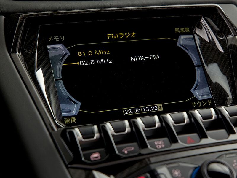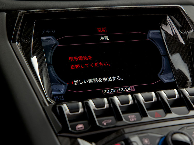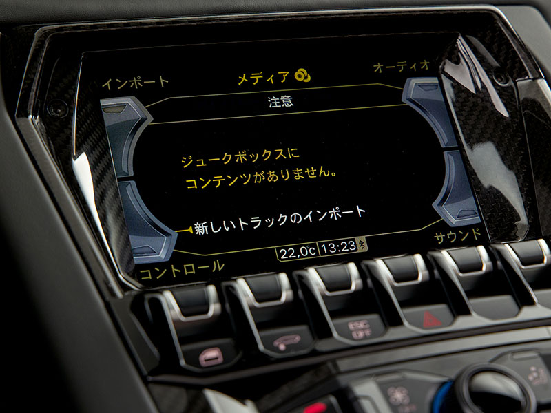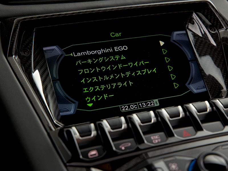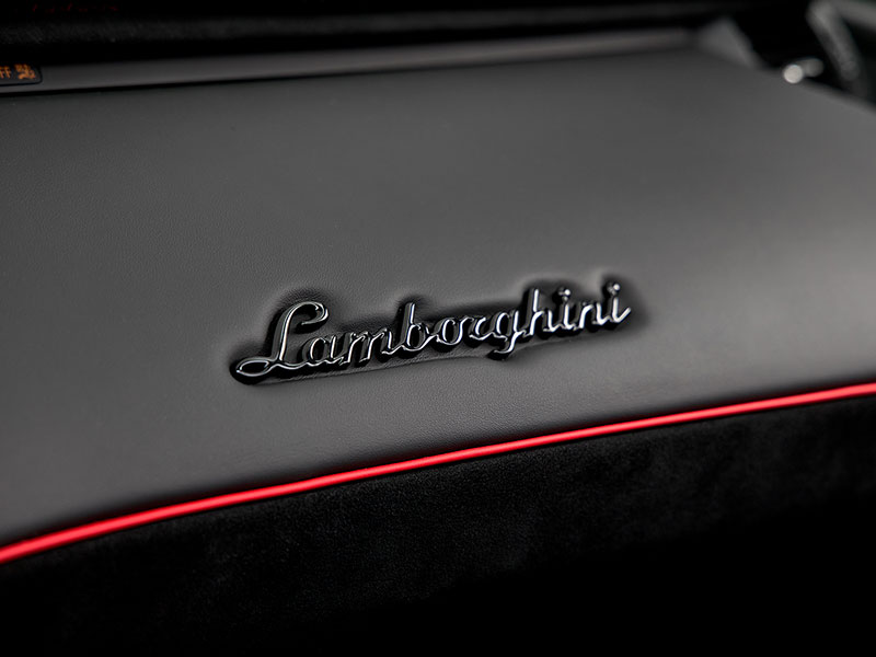 ダッシュボードのレザー内装には、控えめにランボルギーニのロゴが飾られています。