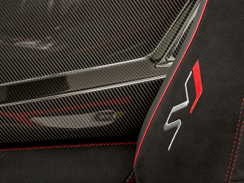 ヘッドレストもレザー、アルカンターラ、カーボンファイバーで構成されています。