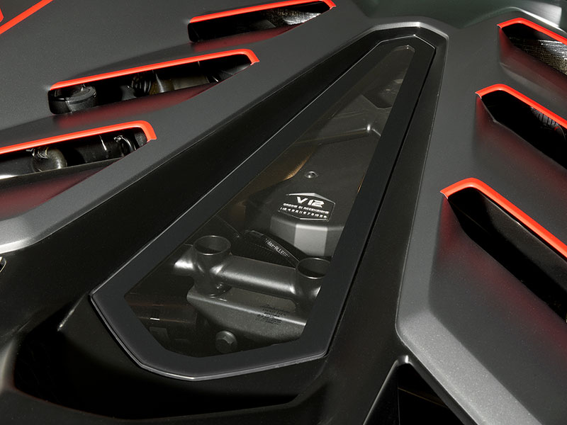 採用V型12缸6498cc後置中置引擎配置,可爆發770匹馬力/8500轉與73.2公斤米扭力/6750轉的驚人動力
